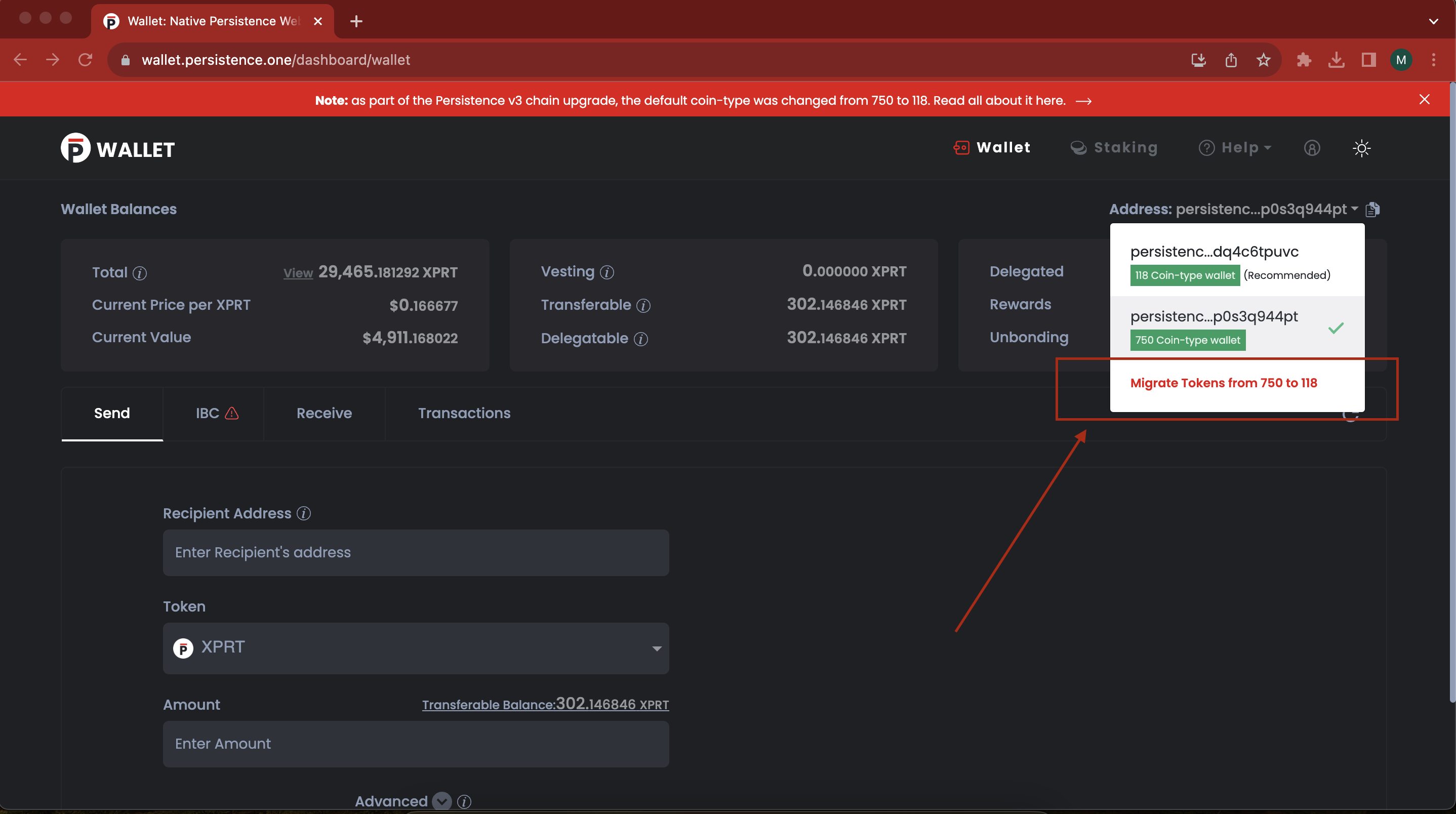 This guide is for users who have logged into pWALLET using Keystore or Mnemonic/Seed-Phrase & want to migrate their 750 coin-type wallet address to 118 coin-type wallet address.